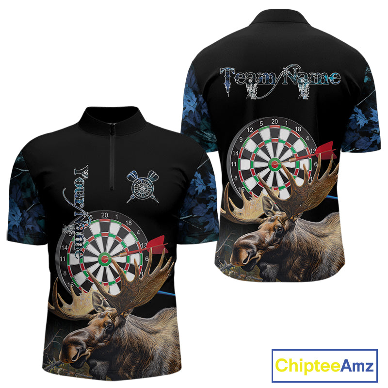 Personalized Black and Blue Camo Moose Darts Shirts For Men Custom Darts Team Jerseys NQS10975
