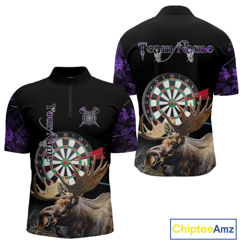 Personalized Black and Purple Camo Moose Darts Shirts For Men Custom Darts Team Jerseys NQS10976