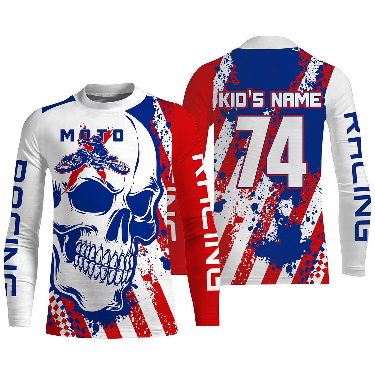 Skull MotoX jersey custom motocross UV American flag Patriotic dirt bike racing motorcycle racewear NMS947