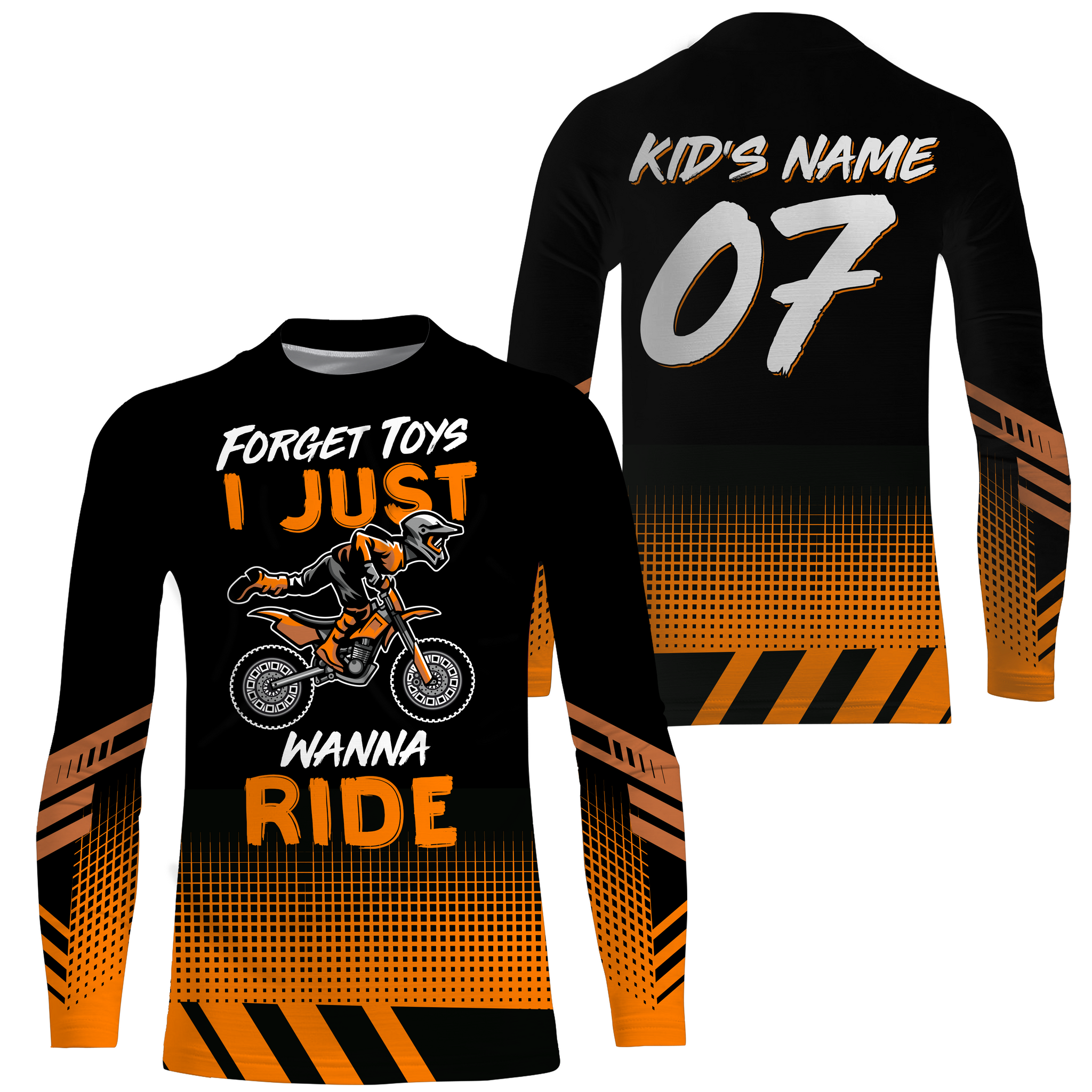 Kid Custom Motocross Jersey Forget Toys I Just Wanna Ride Dirt Bike UPF30+ Youth Racing Motorcycle NMS955