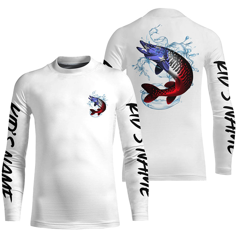 Personalized American Flag Musky Fishing Shirts, Patriotic Muskie Long Sleeve Fishing Shirts IPHW6274