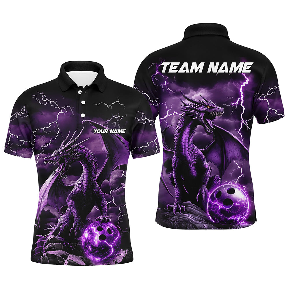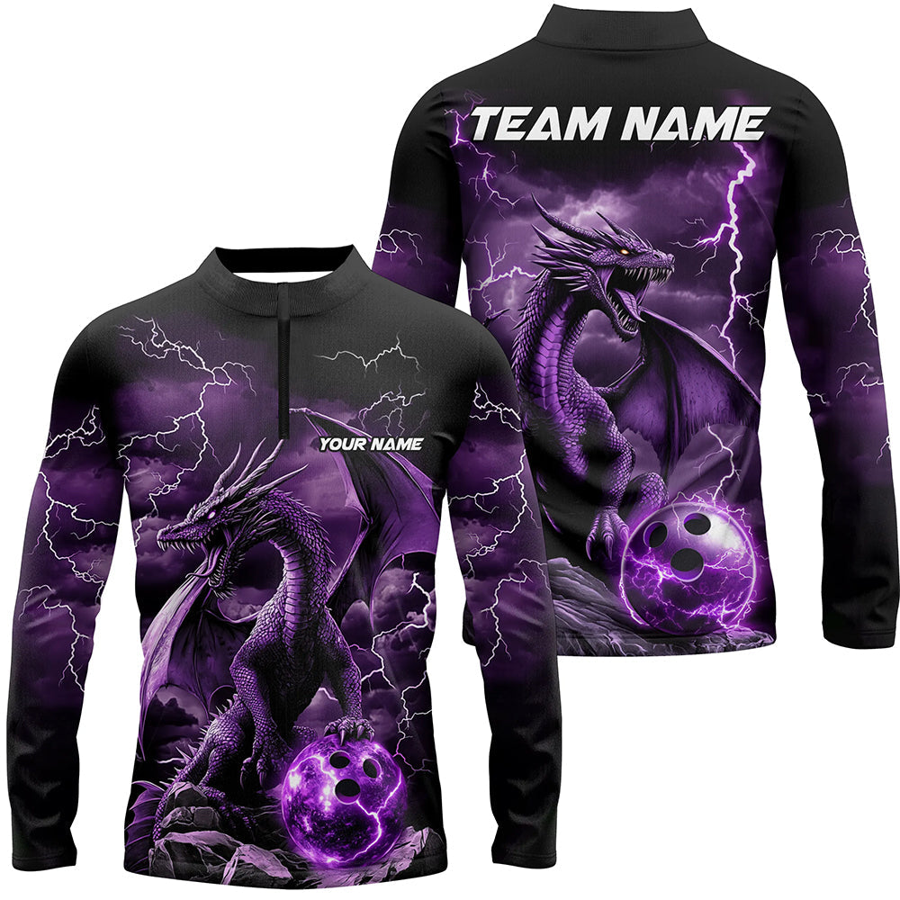Black And Purple Thunder Lightning Custom Dragon Bowling Team Shirts For Men, Bowling Uniform IPHW7992