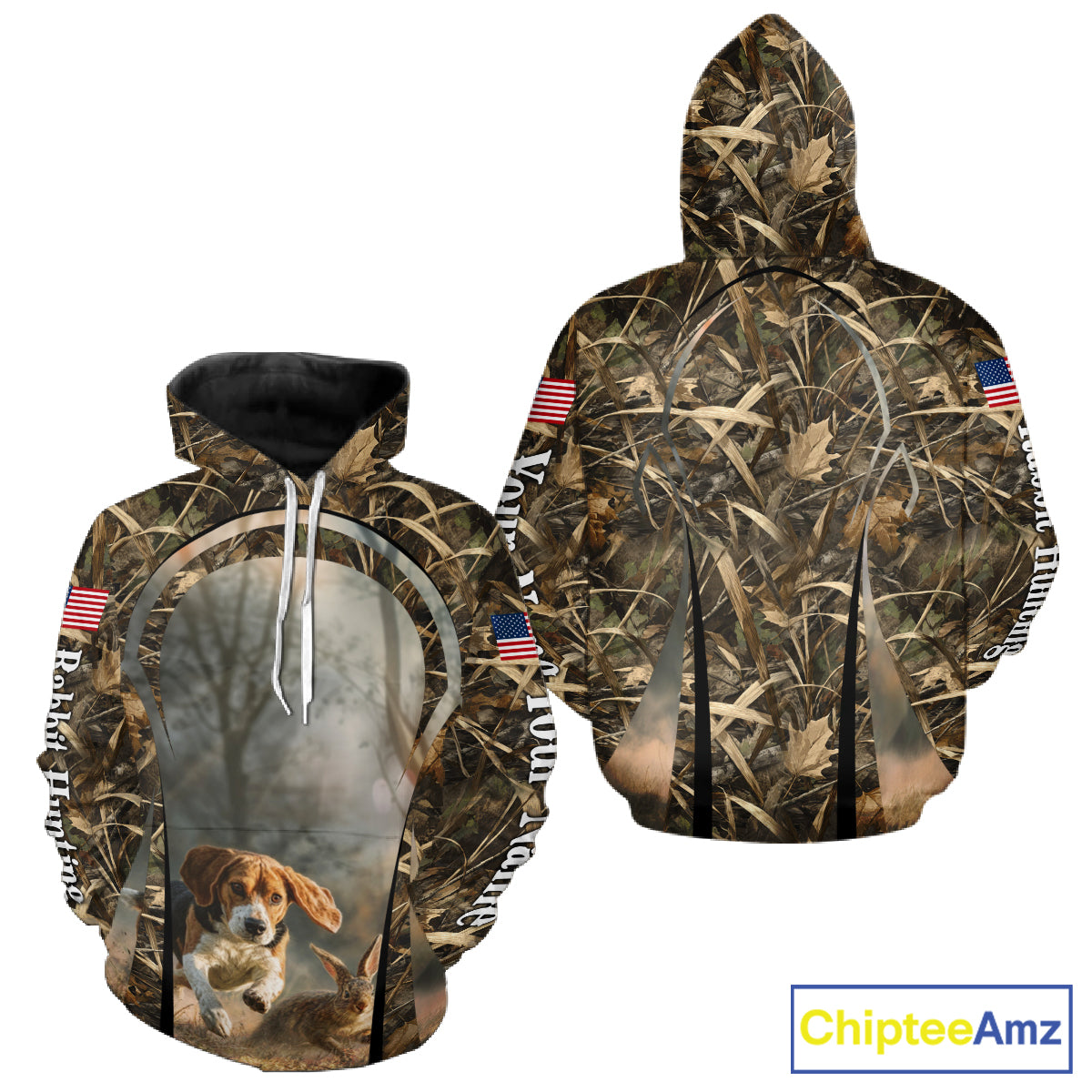 Custom Beagle Dog Rabbit Hunting US Flag Camo Shirts, Rabbit Hunting Gifts for Men NBT234