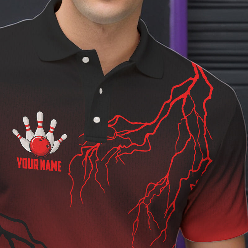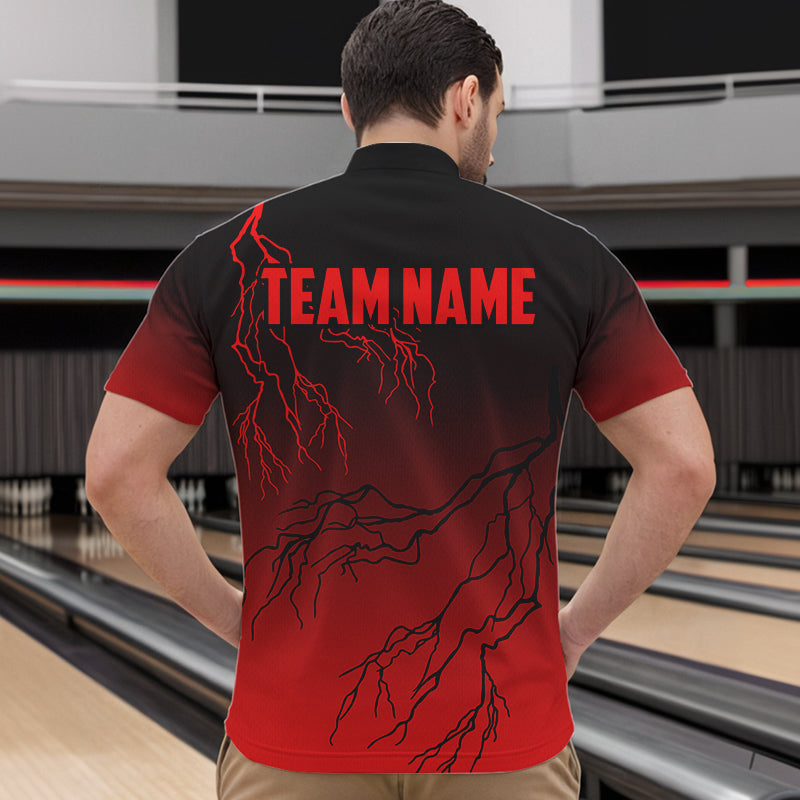 Black and Red gradient Lightning thunder storm Bowling shirts for Men Custom Bowling Team Jerseys NQS9353