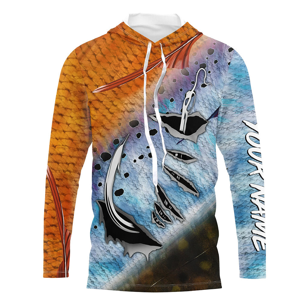 Redfish, Trout, Flounder Scale Custom Uv Protection Fishing Shirt, Fish Hook Design Jerseys IPHW5068