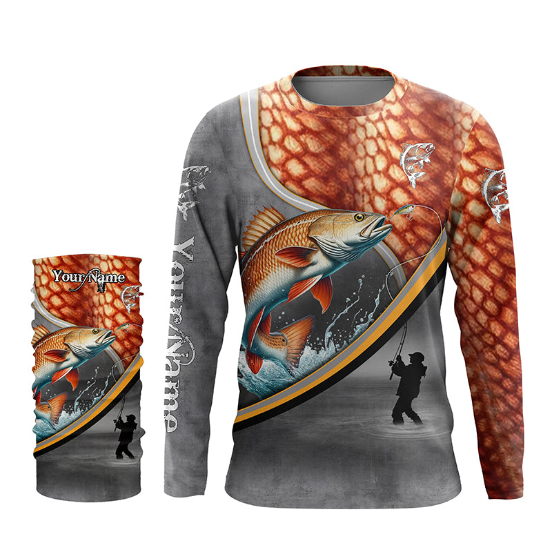 Redfish red drum fishing scales personalized saltwater fishing shirts, sun protection fishing apparel NQS3289