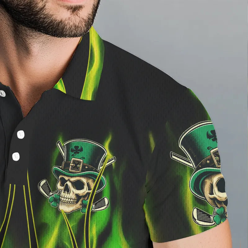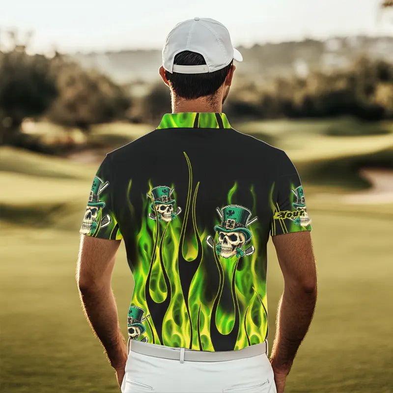 Mens golf polo shirts Green clover skull St Patrick's Day golf shirts custom green fire golf apparel NQS7055