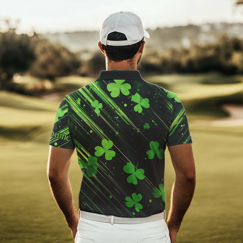 Personalized Black & Green Clover pattern Men golf polo shirts Custom St Patrick Day mens golf wear NQS9574