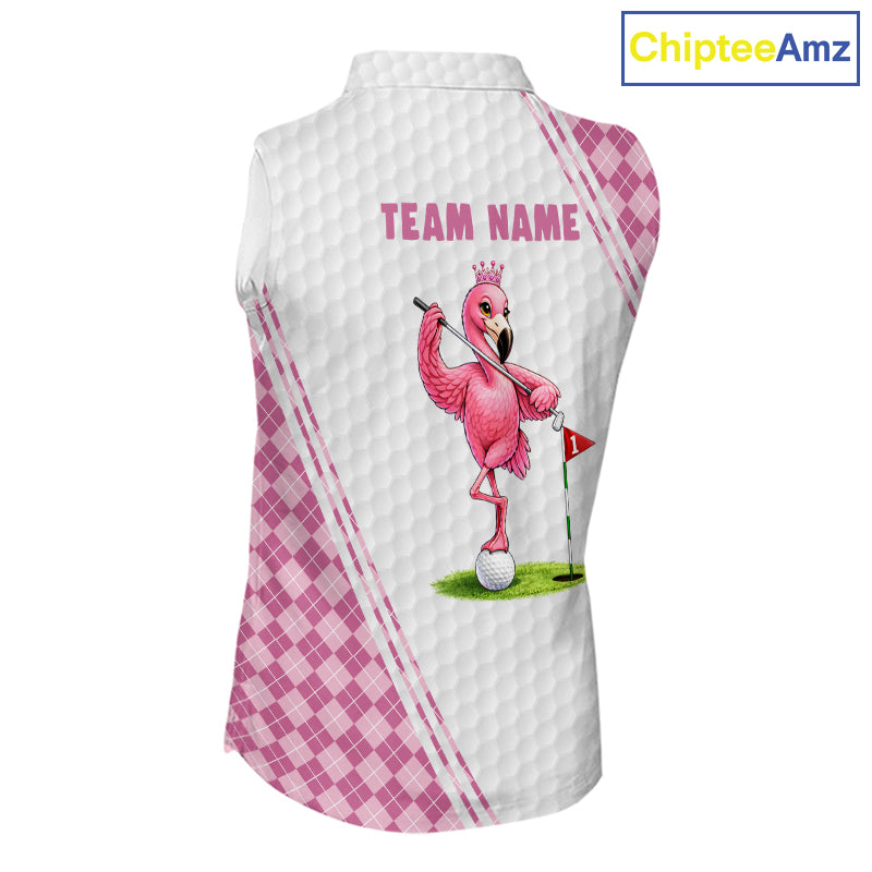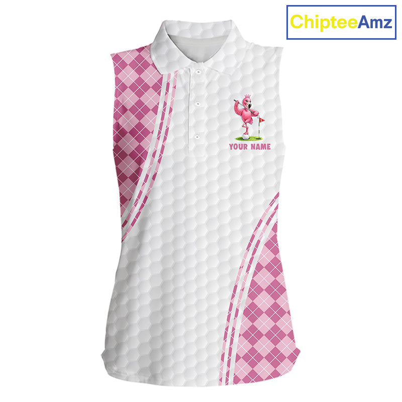 Funny Womens Golf Sleeveless Polo Shirt Custom Crown Flamingo Pink Argyle Pattern Golf Clothing Shirts NYN2876