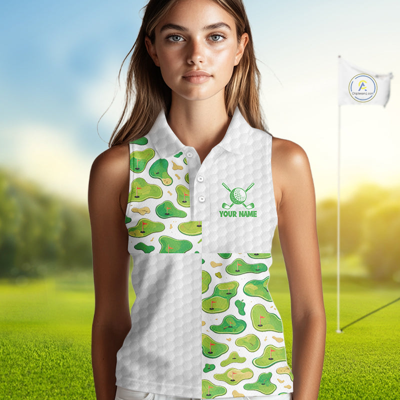 Personalized Womens Golf Sleeveless Polo Shirts Green Golf Courses Custom Name Golf Team Shirt Golf Gifts NYN2880