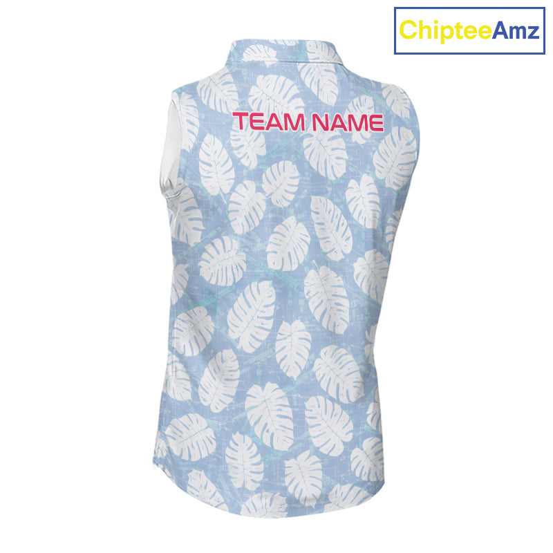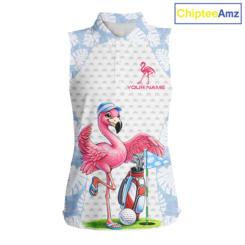 Custom Blue Tropical Monstera Funny Flamingo Matching Womens Golf Sleeveless Polo Shirts Team Golf Clothes NYN2881