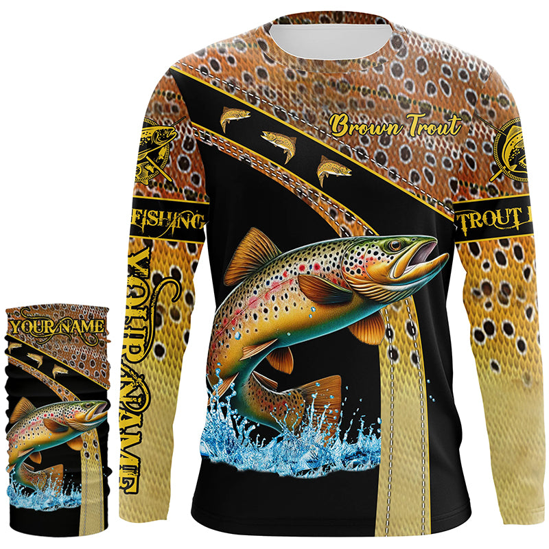 Brown trout fishing scales UV protection Custom long sleeve fishing shirts, trout fishing jerseys NQS5087