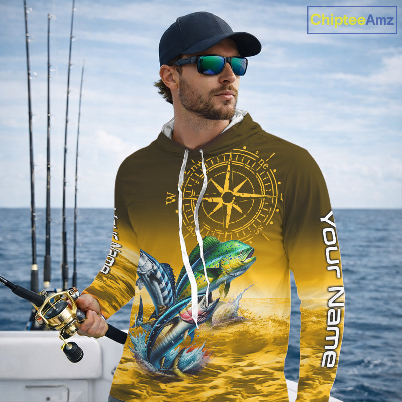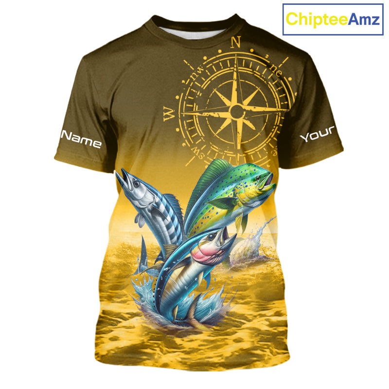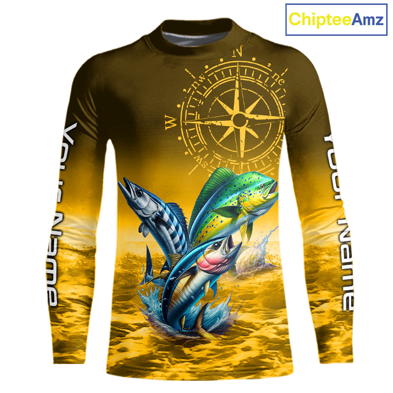 Custom Mahi Mahi, Wahoo, Tuna Yellow Performance Fishing Shirt, Compass Offshore Tournament Shirts NQS11438