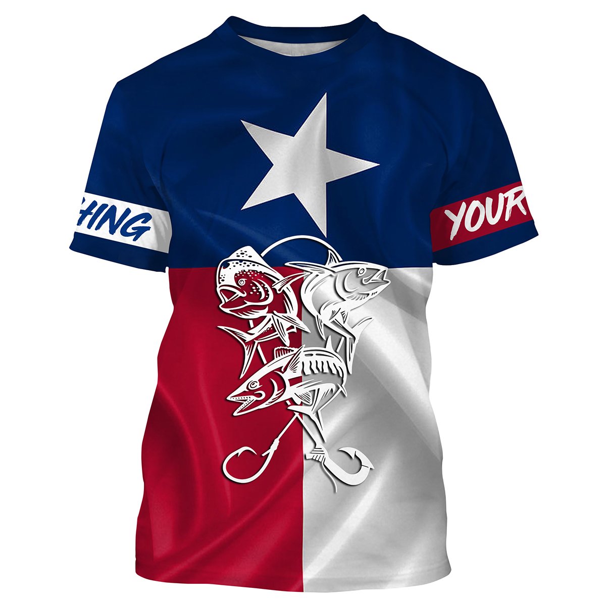 Mahi Mahi, Tuna, Wahoo Saltwater fishing Texas Flag custom name fishing shirts NQS413