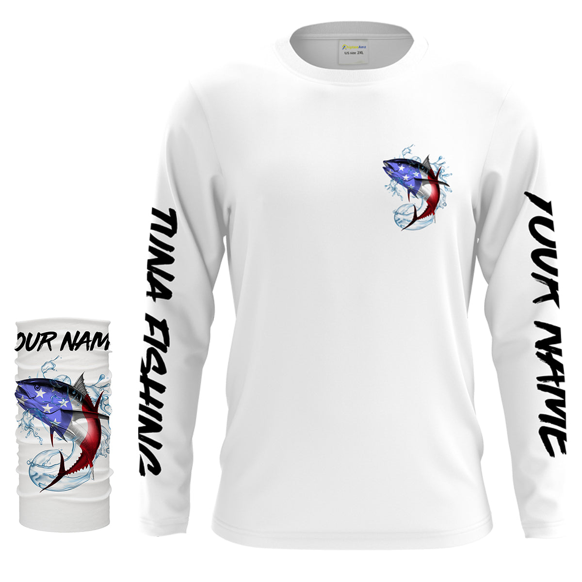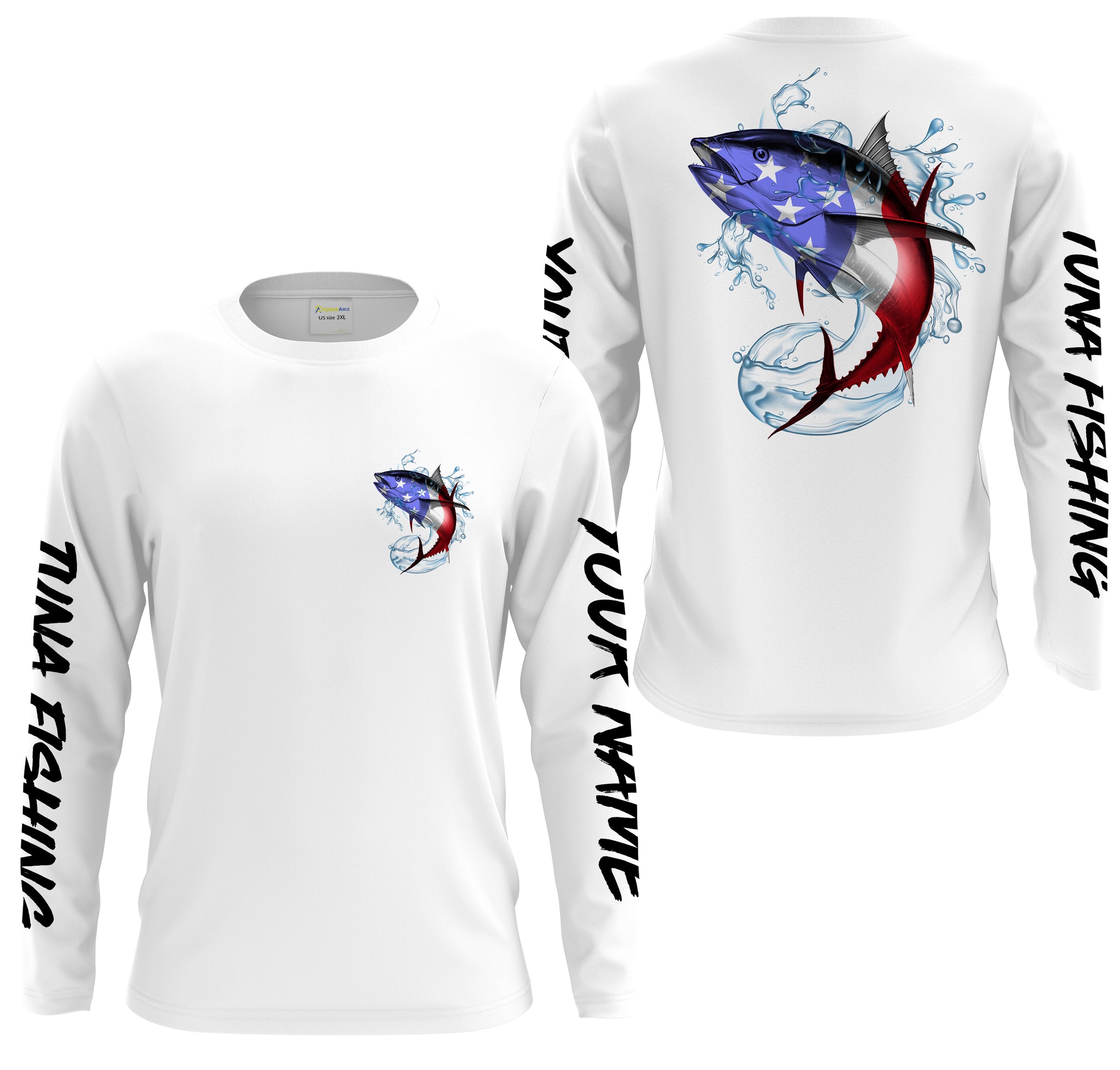 Tuna Fishing American Flag Custom performance Long Sleeve Fishing Shirts, Patriotic Fishing gifts - IPHW1392