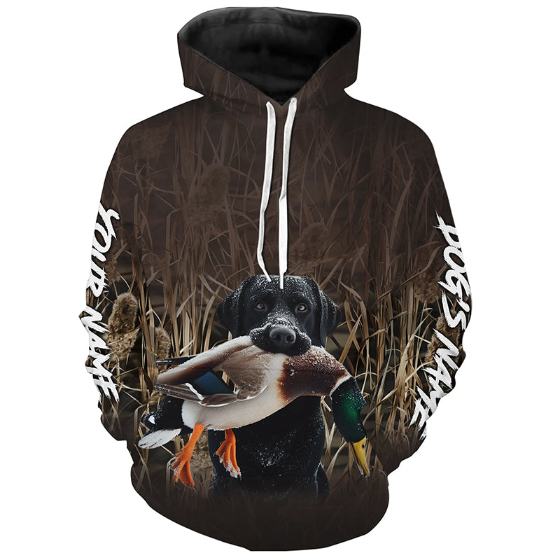Duck Hunting with Dog Black Labrador Waterfowl Camo Custom Name Shirts, Duck Hunting Clothes FSD4536