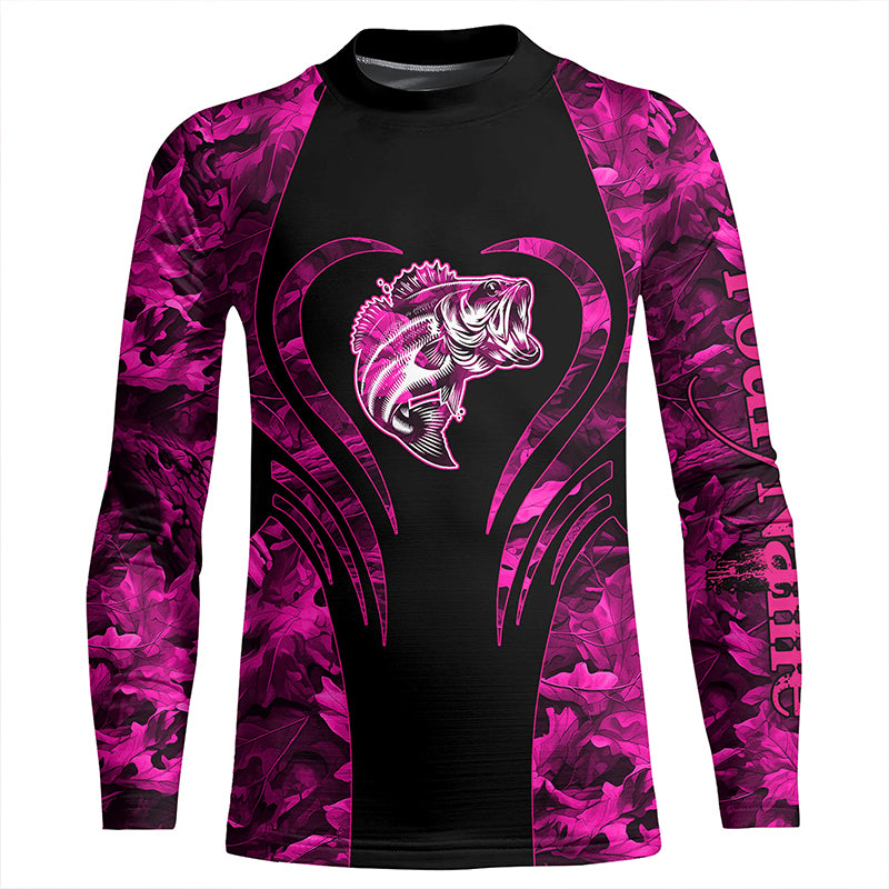 Bass fishing pink girl camo shirt Custom name Long Sleeve Fishing Shirts, fishing gifts for women, kid NQS1642