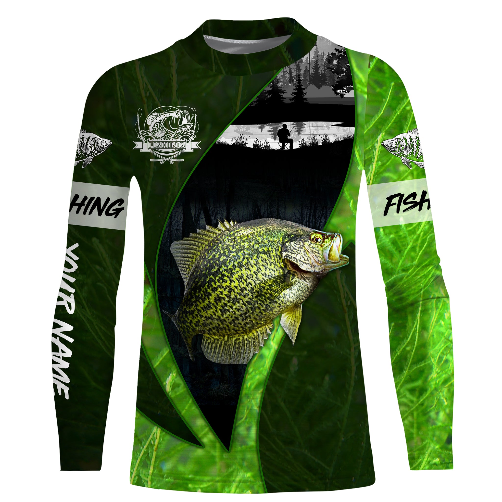 Crappie fishing green shirt Custom name UV Long Sleeve Fishing Shirts, fishing gifts for men, women NQS3721