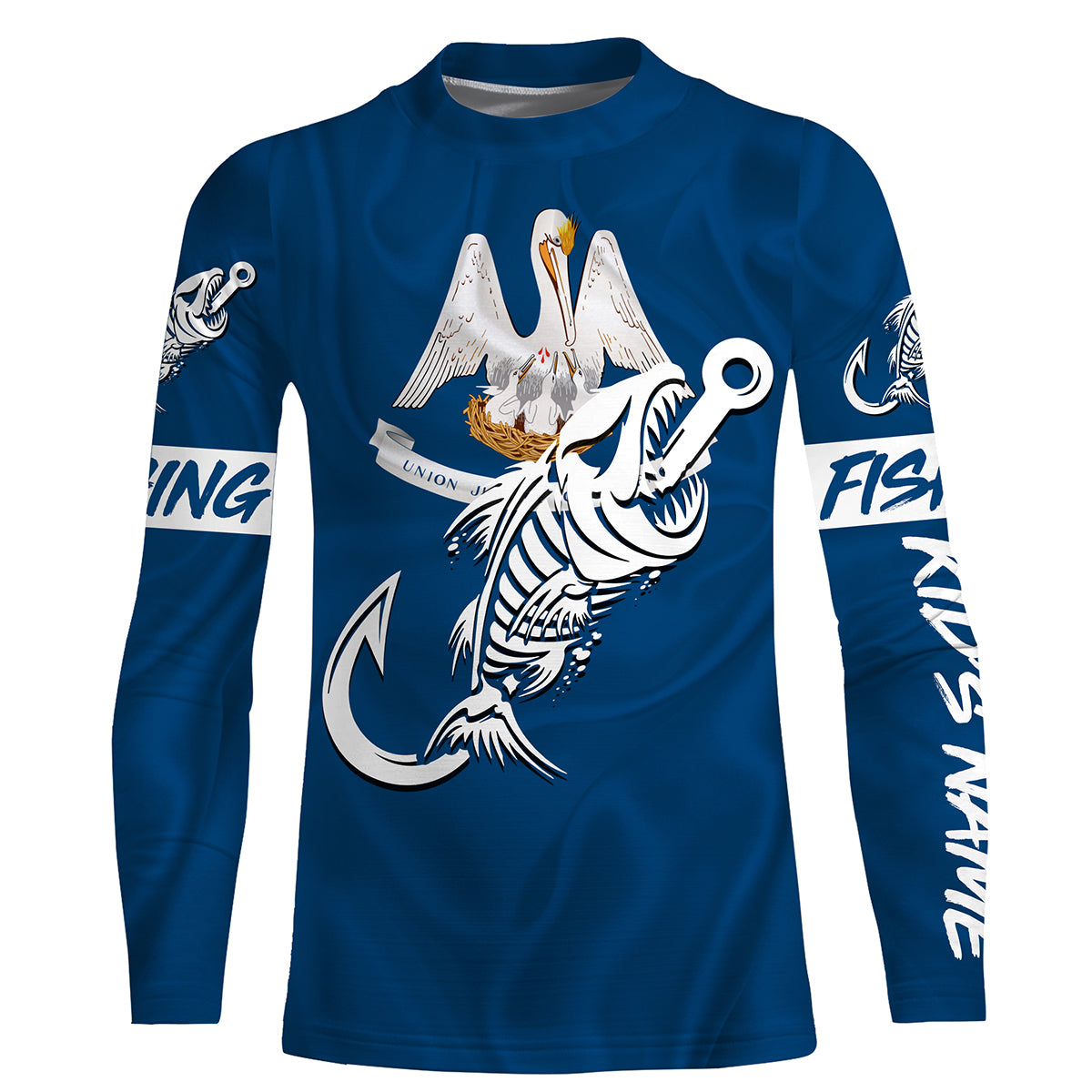 LA Fishing Custom Louisiana Flag Fish hook skull Custom sun protection fishing shirts for men, women NQS3317