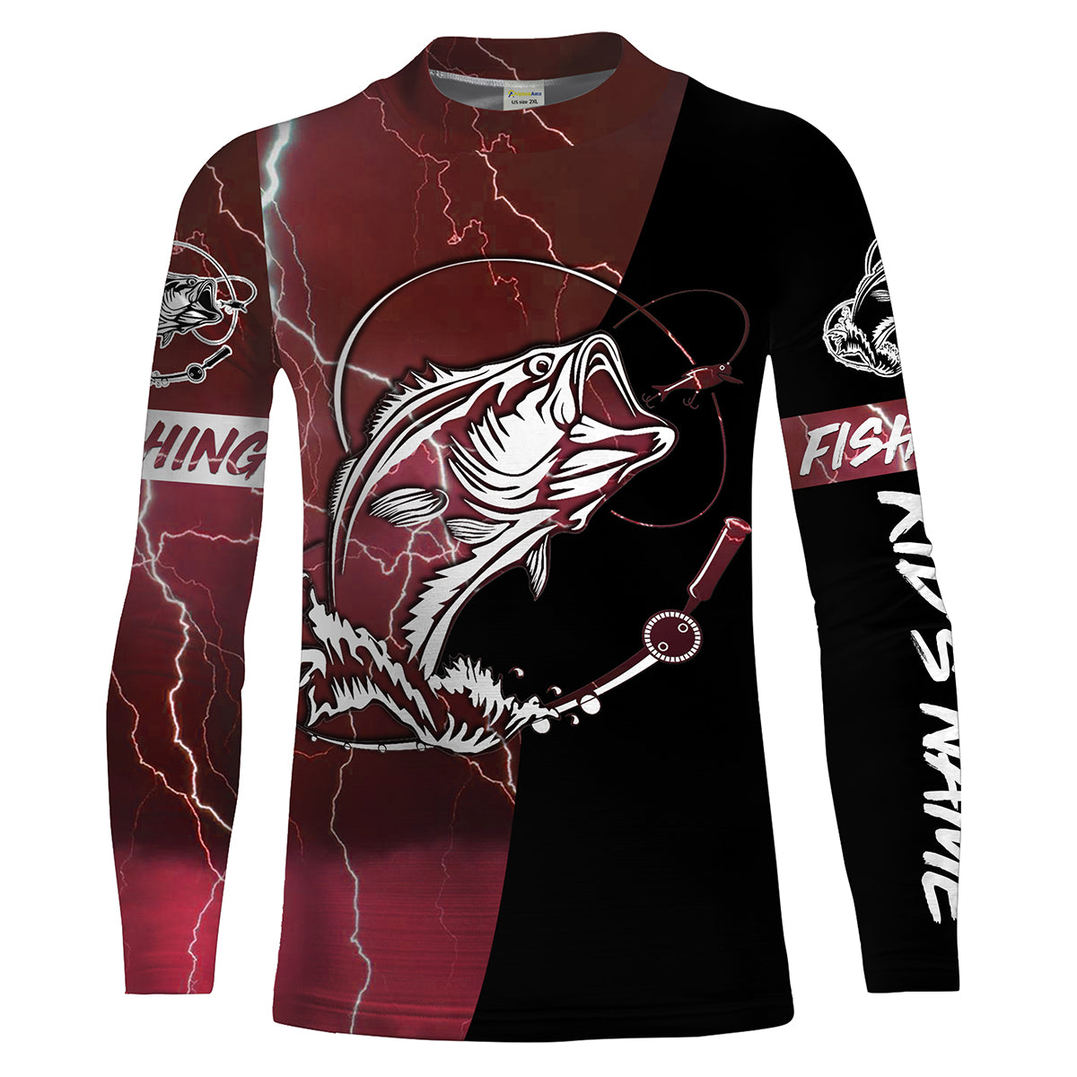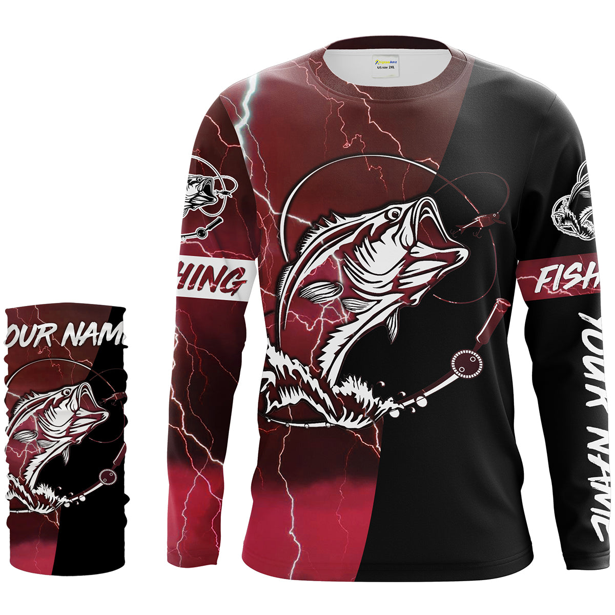 Largemouth Bass Fishing tattoo red camo black Custom name UPF30+ performance fishing shirts fishing gift for men, women NQS2065