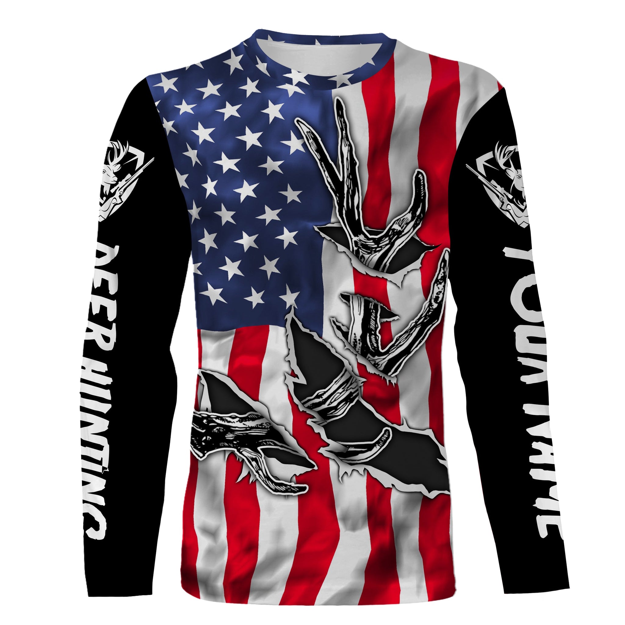 American Flag Deer Hunting Antler 3D Patriotic Custom Name All Over Printed Shirts - Personalized Deer Hunting, Shed Hunting Gift FSD2593